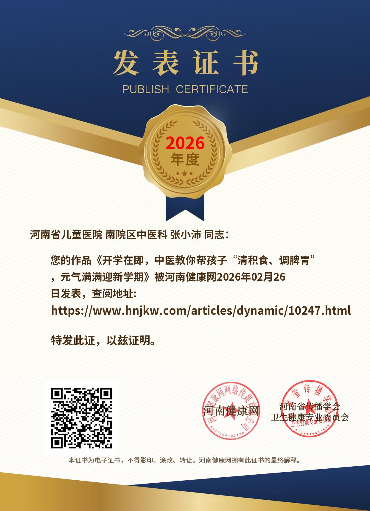 发表证书