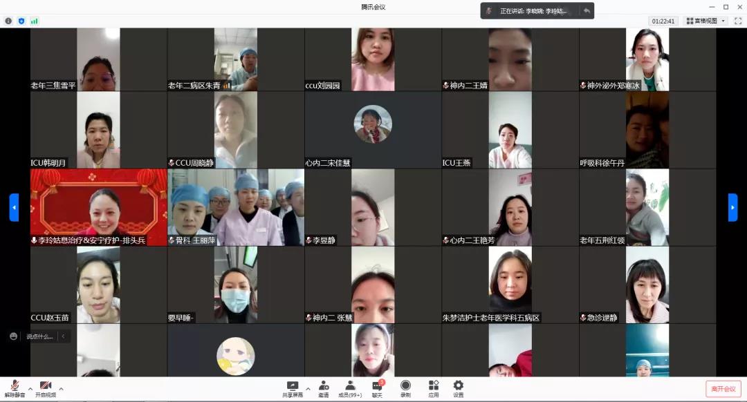 1月27日下午,郑州市第九人民医院护理部召开春节前护理安全工作线上会议。会议由护理部主任周娜主持,常务副院长李玲、全体护士长及护理人员300余人参加会议。
