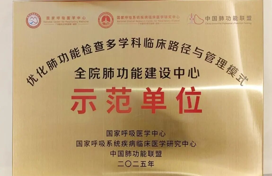 “全院肺功能建设中心”项目建设旨在响应“健康中国2030”战略号召,推动肺功能检查这一呼吸疾病诊断“金标准”的普及与优化,全面提升各级医疗机构对慢阻肺、哮喘等慢性呼吸系统疾病的早诊早治能力和规范化管理水平。荣获该项目示范单位,彰显了郑大一附院在肺功能规范化建设、多学科协作与全院推广方面的领先水平。