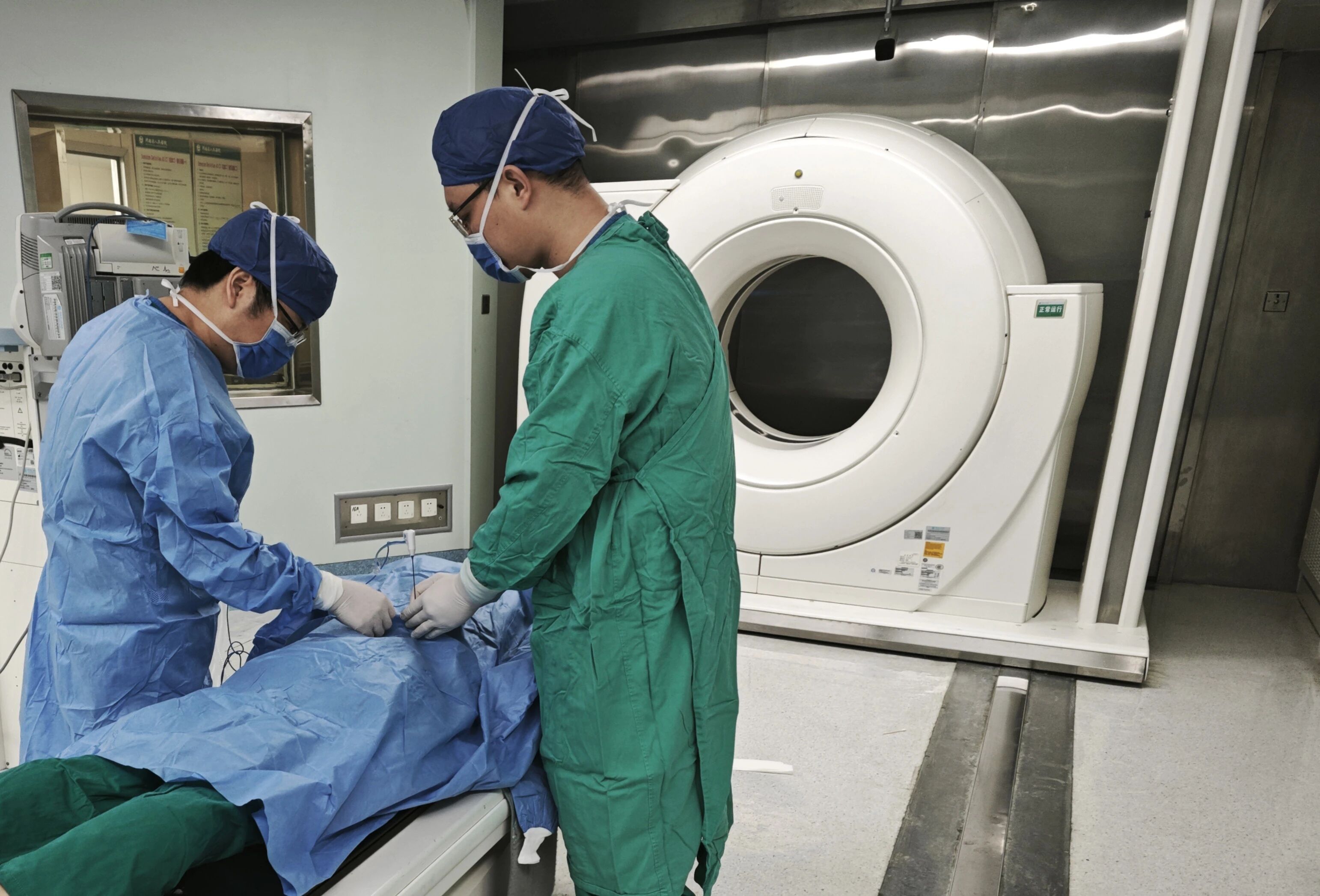 河南省人民医院胸外科团队经全面评估研讨,制定个性化方案:先行局部CT引导下左下肺结节穿刺活检+微波消融术,同期开展喉罩麻醉下左肺上叶单孔胸腔镜微创手术。