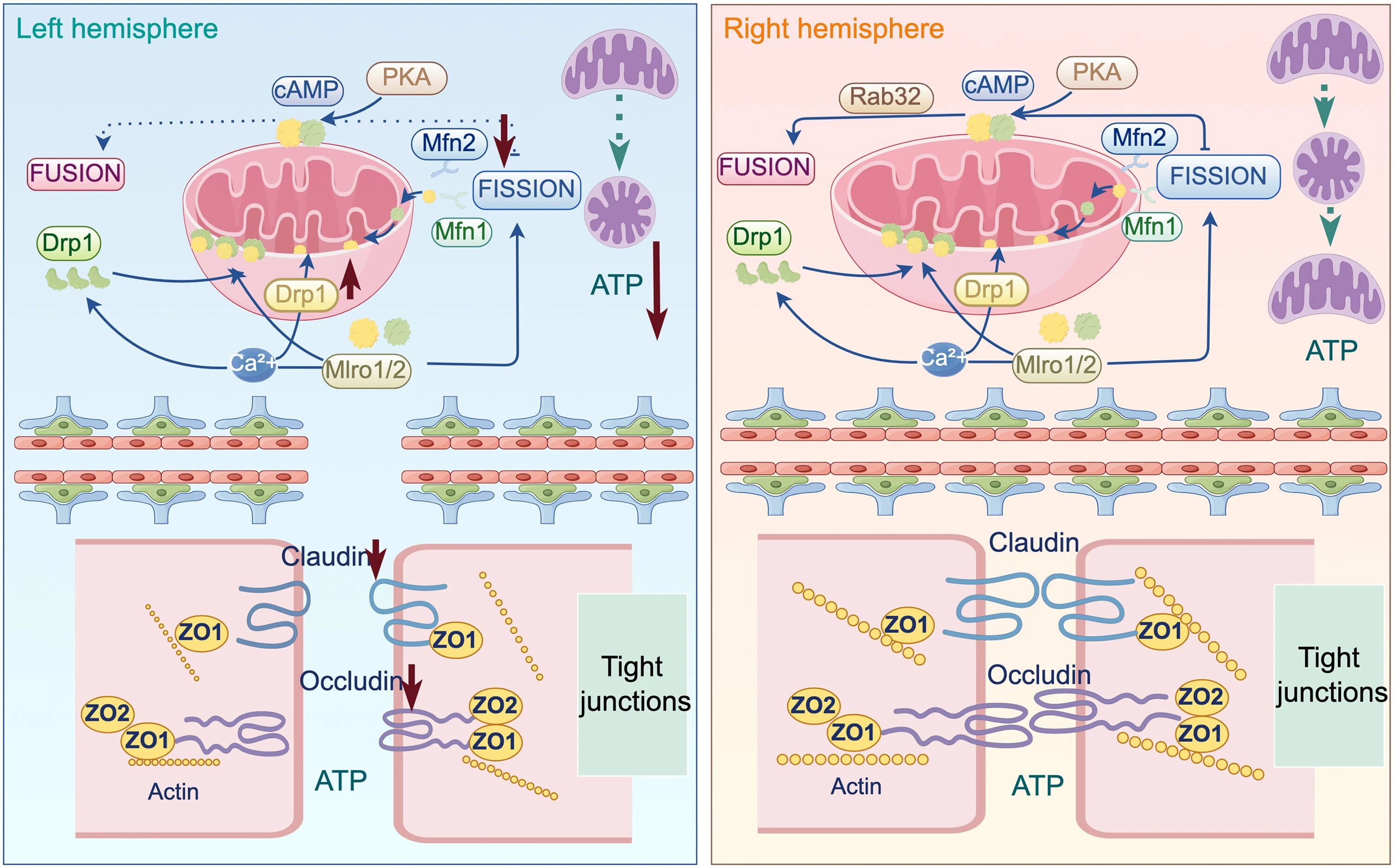 研究表明,左半球内异氟醚通过打破线粒体裂变和融合的平衡,导致线粒体结构重塑与ATP(腺苷5′-三磷酸)产生减少,增强了其自我保护机制,而这些对维持BBB稳态至关重要。