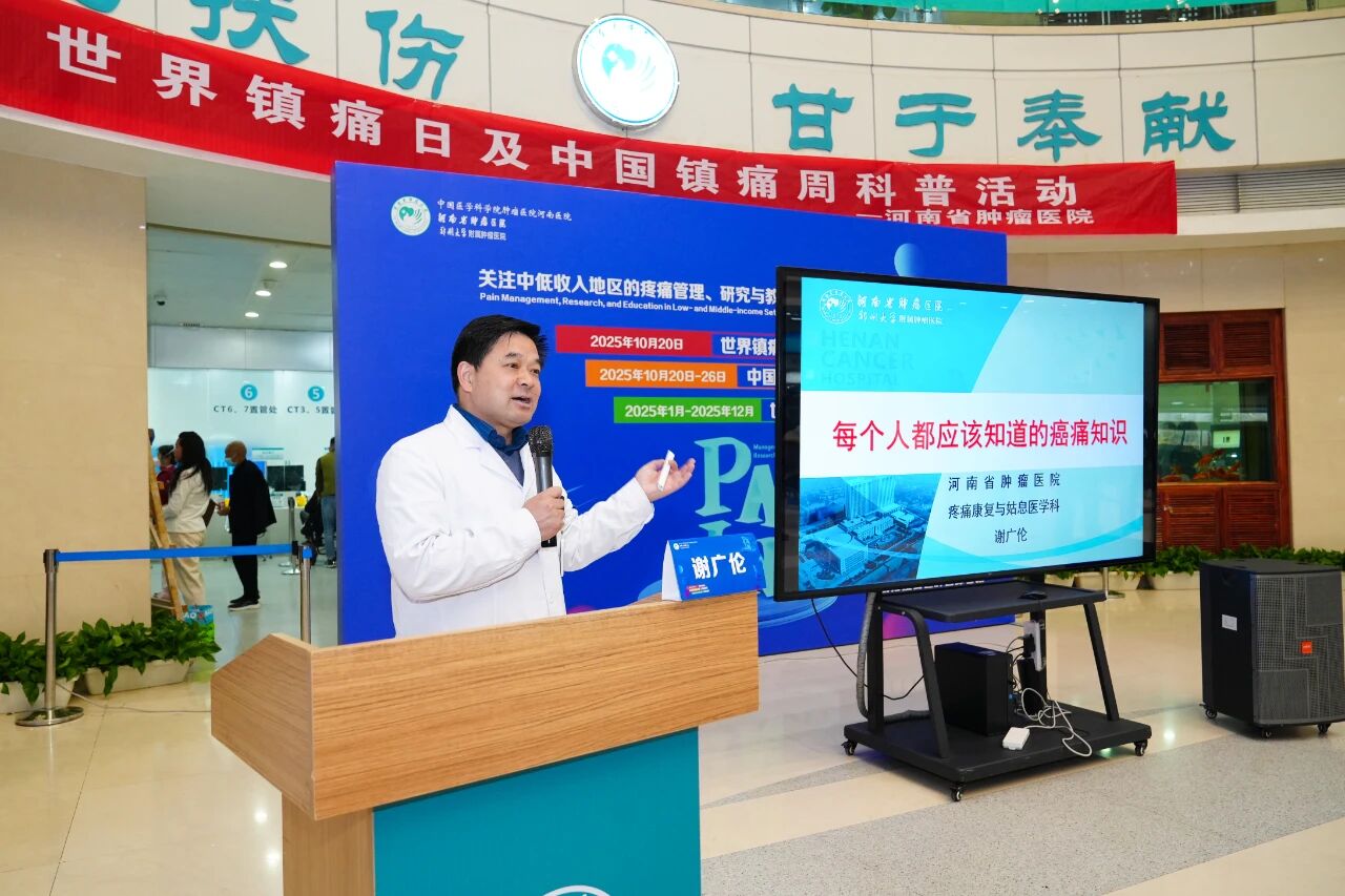 10月20日是第21个“世界镇痛日”,也标志着“中国镇痛周”正式启动。在这个全球共同关注疼痛问题的时刻,河南省肿瘤医院成功举办了一场集科普讲座、互动问答与义诊于一体的大型公益活动。活动现场气氛热烈,暖意融融,为深受癌痛困扰的患者带来了科学的镇痛知识和温暖的医疗关怀。