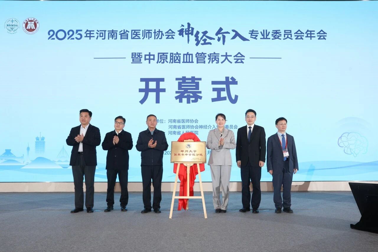 11月1日,由河南省医师协会神经介入专业委员会主办、河南省人民医院等承办的2025年河南省医师协会神经介入专业委员会年会暨第十届中原脑血管病大会在郑州举办。开幕式上,郑州大学国家卒中学院分院正式落户河南省人民医院,标志着我国中部地区卒中防治体系迈入协同创新、全域提升的新阶段。