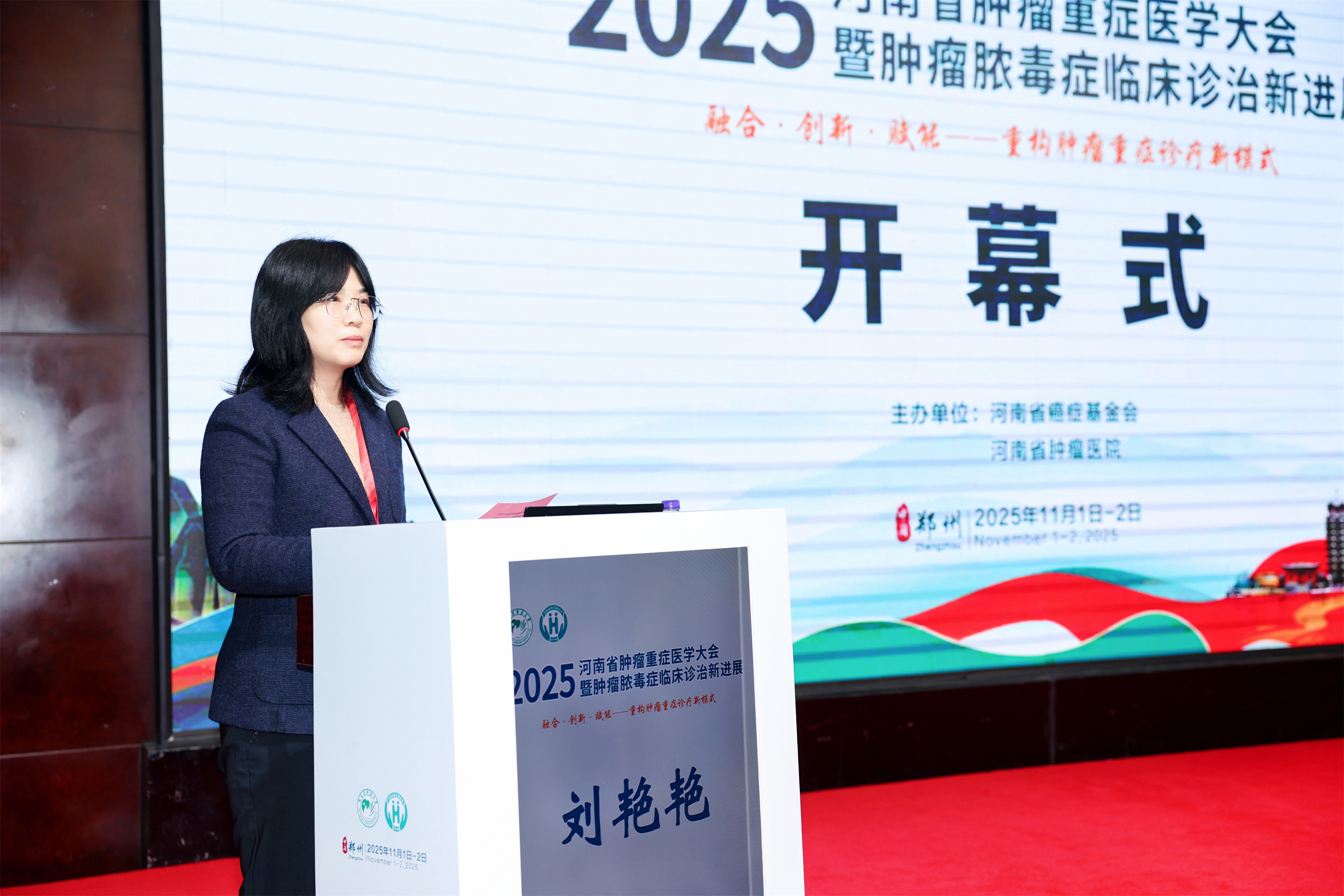 开幕式上,河南省肿瘤医院(中国医学科学院肿瘤医院河南医院)副院长刘艳艳致辞,她指出,随着肿瘤诊疗技术的不断进步,肿瘤患者的生存期显著延长,但与之相关的各种急危重症,特别是肿瘤脓毒症,已成为影响患者预后、导致死亡的主要原因之一,病情的凶险性、复杂性,给临床诊治带来了前所未有的挑战。肿瘤重症医学作为连接肿瘤学与重症医学的重要桥梁,肩负着守护危重患者生命的重要使命。本次大会围绕肿瘤脓毒症的精准识别、早期干预、治疗优化等核心议题,汇聚智慧,共谋发展。