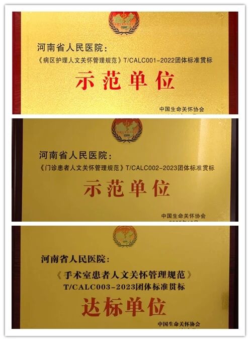 河南省人民医院荣获全国首批人文关怀贯标三项荣誉