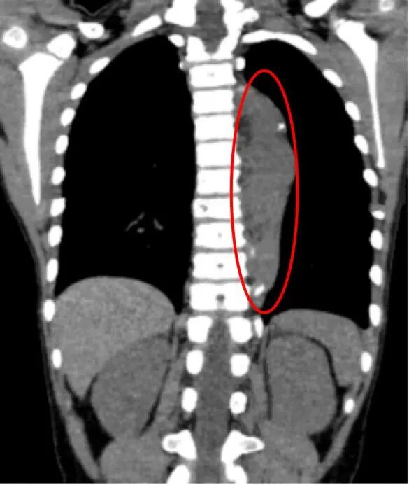 今年7月,来自新乡的浩浩(化名)突然出现间断性下肢疼痛,没过几天,右侧肋骨也开始疼。本以为只是生长痛,但一张详细的胸部CT检查报告,却让全家陷入了绝望——浩浩的胸腔里长了一个巨大的肿瘤。