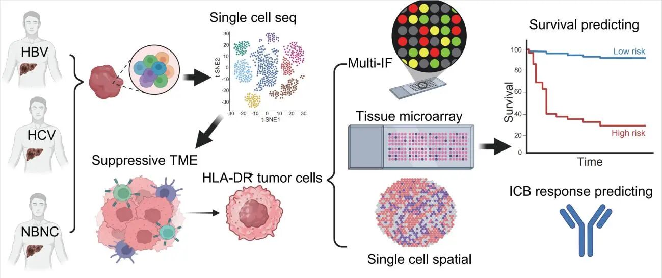 精准预判疗效:团队回顾分析了729例接受免疫治疗的肝癌患者数据,证实肿瘤中这种“HLA-DR⁺”癌细胞越多,患者治疗后复发转移和死亡的风险就越高。未来,患者在治疗前通过检测这个指标,就能更准确地预判免疫治疗是否对自己有效,避免无效治疗带来的经济负担和副作用。