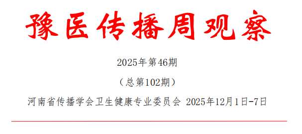 豫医传播周观察从国策览要、豫医动态、医院发展、学术技术、科普精选等方面,为社会各界提供有价值的卫生健康信息,加强健康促进与教育,助力健康河南建设。