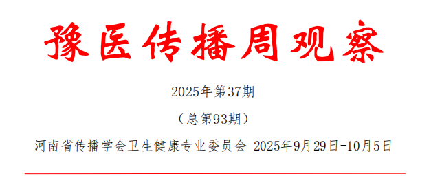 豫医传播周观察从国策览要、豫医动态、医院发展、学术技术、科普精选等方面,为社会各界提供有价值的卫生健康信息,加强健康促进与教育,助力健康河南建设。